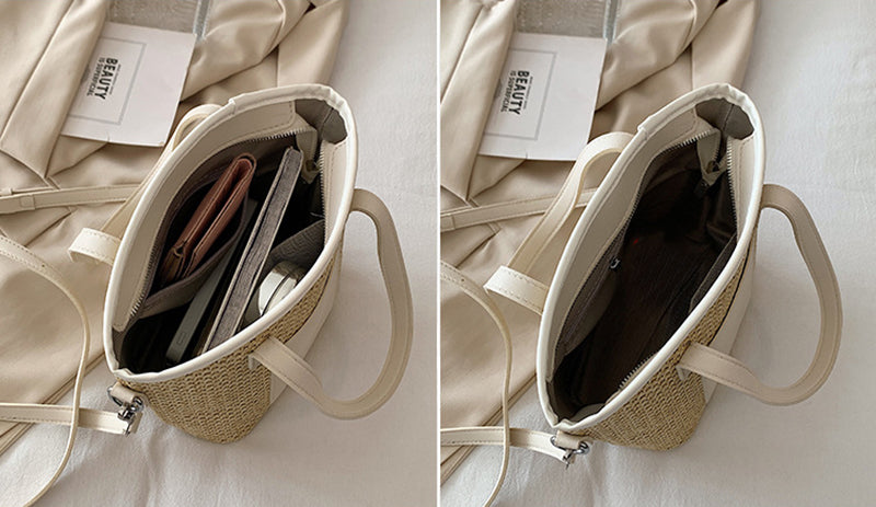 Mit ihren vielseitigen Maßen von 20x12x28cm ist diese schicke Basttasche perfekt für Urlaube und Tagesausflüge und passt nahtlos zu jedem Sommeroutfit, von Shorts und Tops bis zu langen Kleidern. Der Reißverschluss sorgt dafür, dass Ihre Habseligkeiten sicher aufbewahrt werden, während der Schulterriemen aus Kunstleder einen zusätzlichen Hauch von Eleganz verleiht.