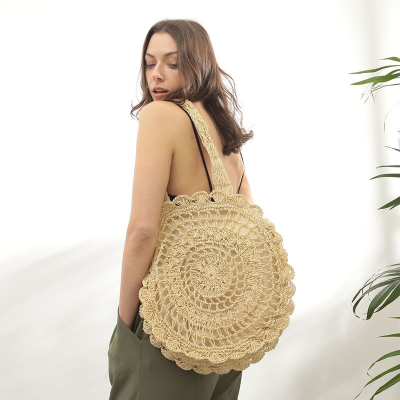 Ob Sie nun zum Strand fahren, auf dem Markt einkaufen oder in der Stadt bummeln gehen, diese Strandtasche ist der perfekte Begleiter. Dank des leichten Designs und der Schulter- oder Handriemen können Sie Ihre Strandutensilien wie Handtuch, Fouta und Sonnencreme problemlos transportieren. Außerdem ist die runde Strandtasche im Bohemian-Stil mit einem Reißverschluss und einer Innentasche ausgestattet, was sie zu einer praktischen Wahl macht.