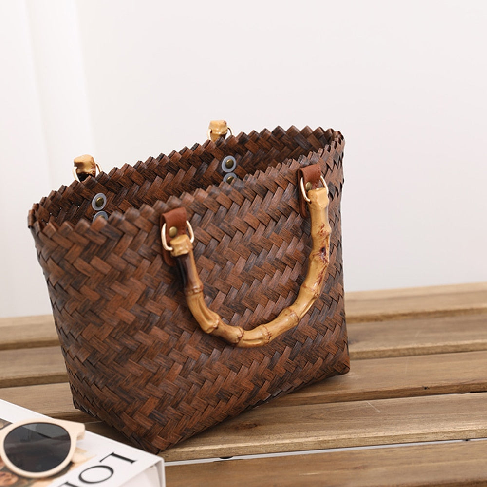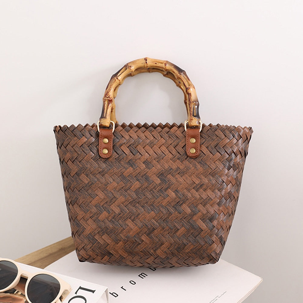 - Stilvolle Handtasche aus Weidengeflecht, perfekt für einen Tag am Strand