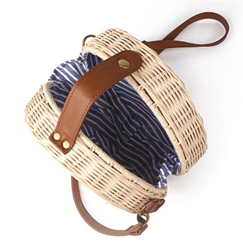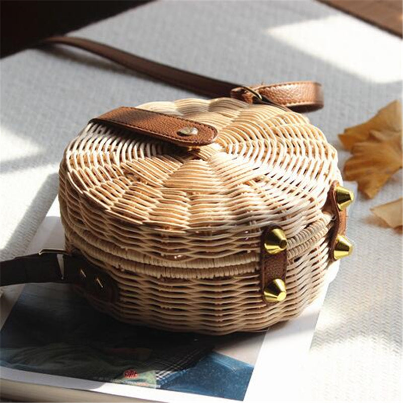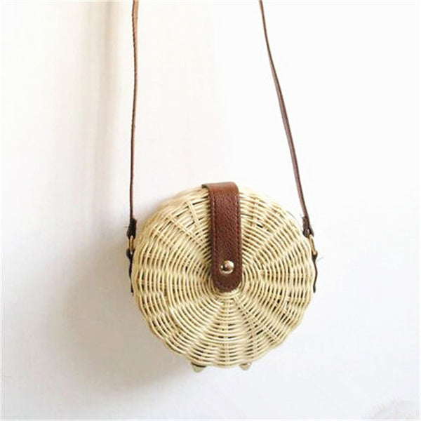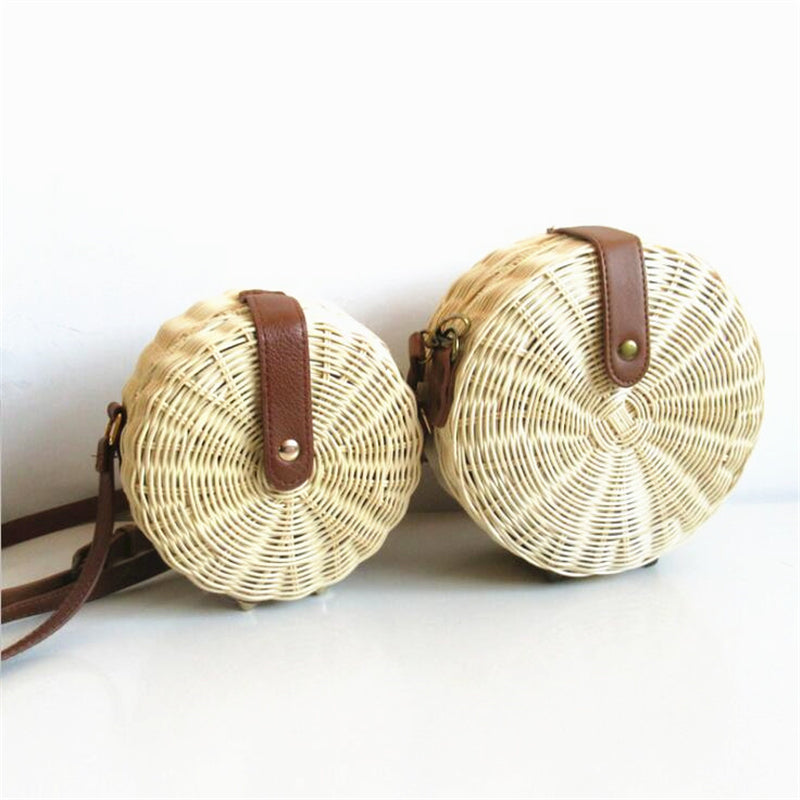 Stylische runde Strohtasche für Strand und Stadt