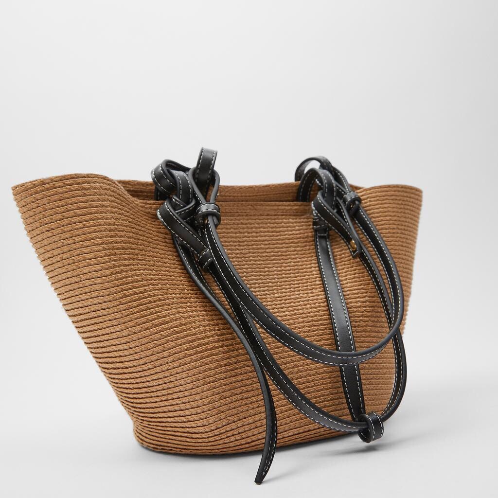 - Material: Stroh, Polyester und PU-Leder