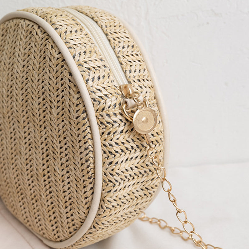Runde Umhängetasche aus Bast