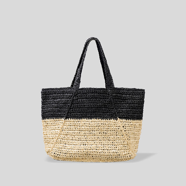 Stylische schwarze Strandtasche aus Stroh für deine Sommerabenteuer