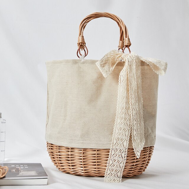 - Handgefertigt aus Weidengeflecht und Canvas-Materialien