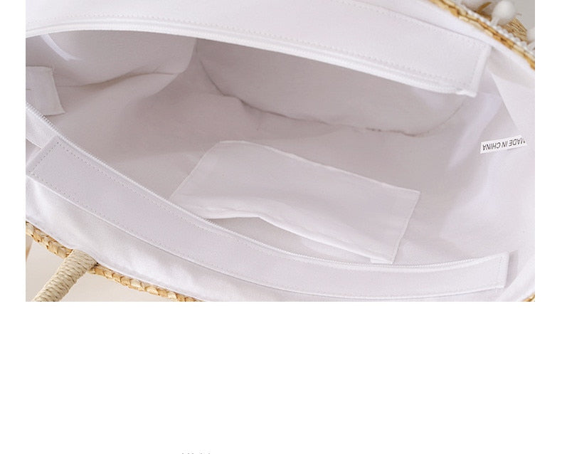 Der Pompon-Strandkorb ist so konzipiert, dass er leicht auf der Schulter oder in der Hand getragen werden kann, was ihn für jeden Strandbesucher unglaublich praktisch macht. Außerdem verfügt er über eine zusätzliche Innentasche mit Reißverschluss, die noch mehr Stauraum bietet. Eine wiederverwendbare und zeitlose Strandtasche, an der man jahrelang Freude haben wird.