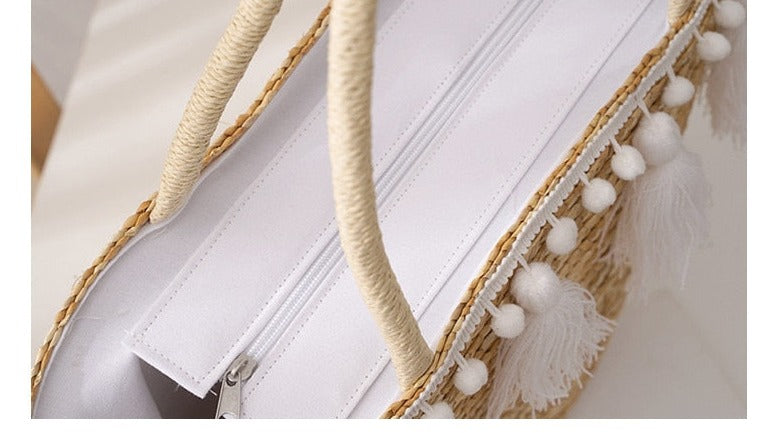 Der Bommel-Strandkorb wird mit seinem Vintage- und Rustikal-Look immer beliebter und ist ein absolutes Must-Have-Accessoire. Egal, ob Sie an den Strand gehen, auf dem Markt einkaufen oder durch die Stadt schlendern, diese vielseitige Tasche kann überall eingesetzt werden. Kein Wunder, dass sie im Sommer schnell zur Lieblingstasche der Frauen aus Bast, geflochtenem Stroh oder Rattan wird.