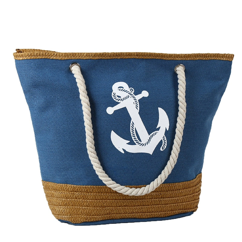 Diese attraktive und praktische Strandtasche ist aus strapazierfähigem Segeltuch und Stroh gefertigt und verfügt über einen sicheren Reißverschluss, um Ihre Sachen zu schützen. Die robuste Seilschlaufe macht es einfach, alles zu transportieren, was du brauchst, während das Design im Tote-Stil deinem Strand-Look einen Hauch von Eleganz verleiht.